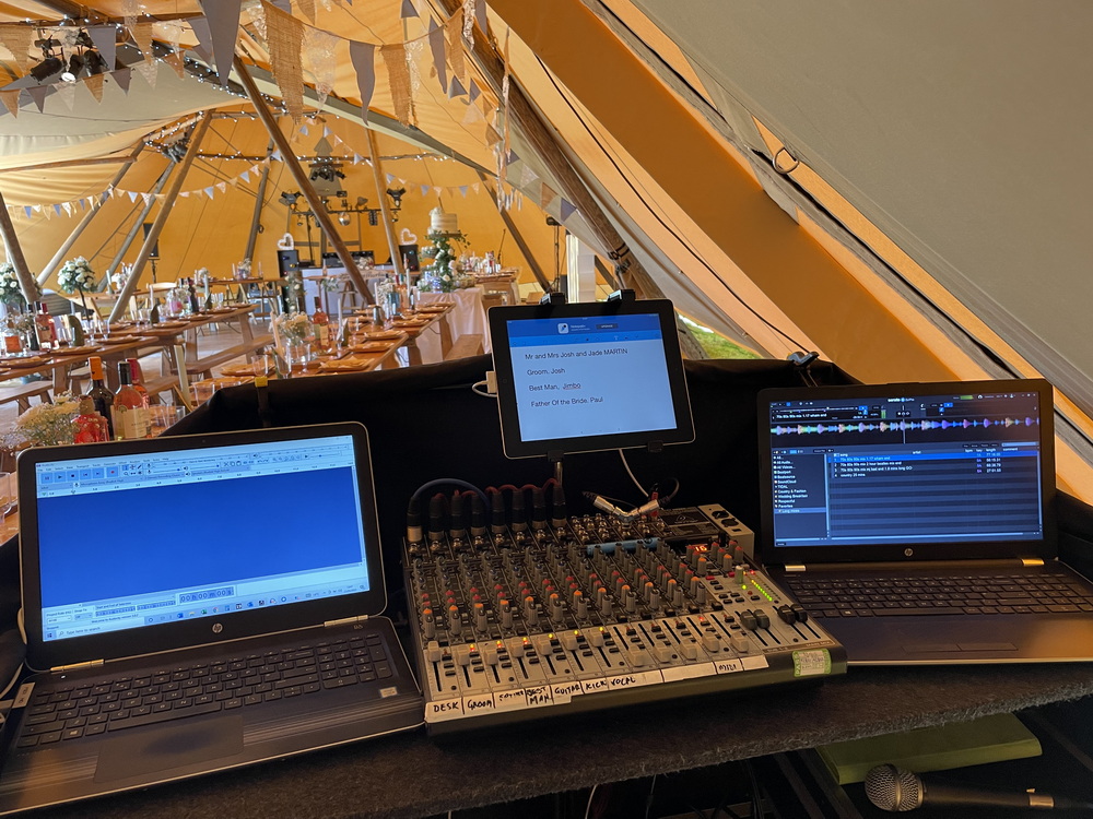 The equipment we use comprises of 16 channel mixing desks, up to 3600 watts RMS of sound, differing microphone systems and stage monitoring (if required).